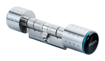 Het is pikdonker, het begint te miezeren. Langzaam nadert een donkere gestalte de voordeur en strekt zijn arm uit naar de elektronische sluitcilinder – er is geen sleutel of transponder te bekennen. Toch licht de knop van de elektronische WILKA-cilinder in het donker even kort groen op en gaat de deur als door een magische kracht bewogen open.
